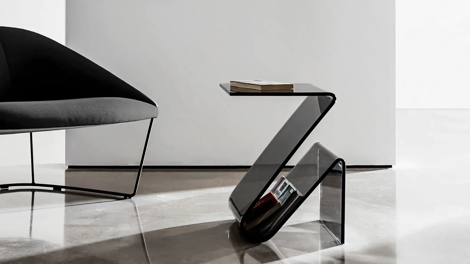 Complementi e contenitori personalizzano l'arredo di casa, riempiendo lo spazio in modo utile e rendendolo accogliente e bello da vedere. Portariviste Zeta di Sovet in vetro: darà carattere e charme a un locale ammobiliato con mobili ed elementi accessori dai richiami design. In negozio potrai vedere dal vivo la qualità dei modelli di contenitori design in vetro del marchio, proprio come questa soluzione in foto. Le composizioni arredative di grande valore estetico del brand Sovet personalizzano l'ambiente con colore e gusto, ricreando particolari atmosfere arredative.