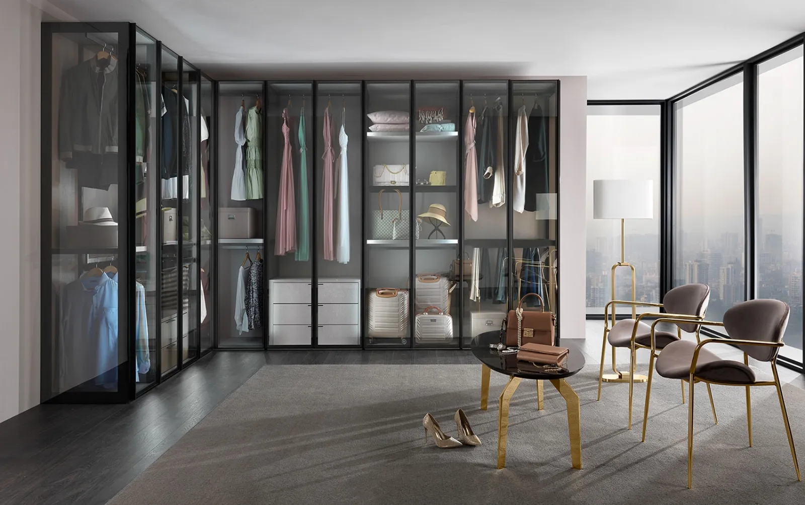 Armadio angolare Evolution di Mobil Più: se desideri arredatori professionisti per preventivi e progetti, realizza con noi la casa che hai sempre sognato. Durata e comfort sono gli ingredienti che, di pari passo con un certo stile, distinguono tutti gli Armadi ad angolo moderni della marca Mobil Piu. Una ricca gamma di arredi in vetro come questo guardaroba con ante battenti in foto. Armadio angolare Evolution di Mobil Più in vetro: in un ricco catalogo di mobili e oggetti accessori, questo modello ti farà ultimare la tua zona notte come l'avevi immaginata. Se vuoi ricreare una stanza funzionale ed esteticamente gradevole, compila il form o vieni a trovarci per ottenere infromazioni, consigli e novità nell'ambito dell'Arredamento Casa.
