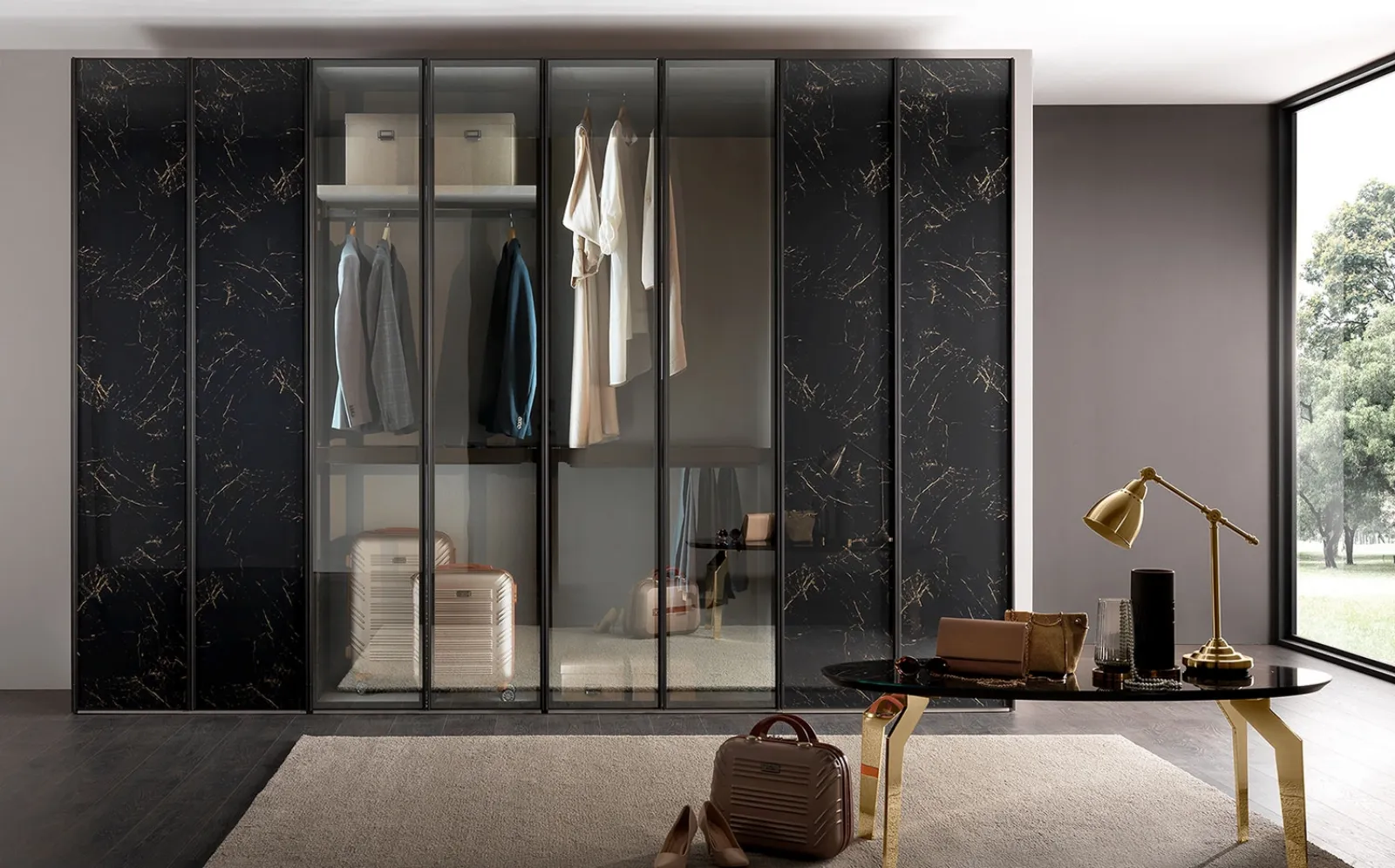 Per ultimare al meglio il progetto d'arredo, scegli le nostre proposte di Arredamento Casa delle migliori marche, letti, armadi e comodini vari per buon gusto, grandezza e materiale. Gli Armadi e le cabine armadio con ante battenti devono arredare la camera garantendoti una perfetta ottimizzazione degli spazi e un'esclusiva ricerca stilistica. Armadio Evolution con ante in vetro stopsol e effetto marmo di Mobil Più: compila il form, contattaci e dai vita alla stanza del relax come l'hai sempre immaginata. Contattaci per informazioni e preventivi e potrai ultimare la camera da letto che hai sempre sognato grazie ad una ampia varietà di mobili contenitori moderni come questo armadio in vetro nell'immagine.