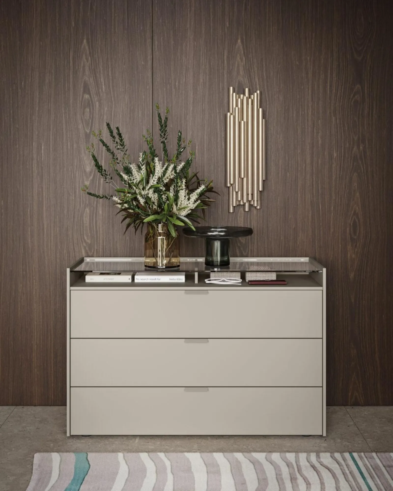 Valorizza i tuoi interni scegliendo composizioni di mobili abbinati o crea unici accostamenti di stile e tonalità grazie al catalogo di mobili e oggetti accessori per la zona del riposo che proponiamo, come il modello in laccato opaco presente in foto, anche realizzabili su misura. La zona del riposo include anche i Comodini: arredi contenitivi utilissimi che permettono di riporre oggetti e potere ususfruire di superfici per appoggiare per vari utilizzi. Comò Kristal di Morassutti: contattaci e ottieni informazioni sulle nostre composizioni e arreda la camera come l'avevi immaginata.