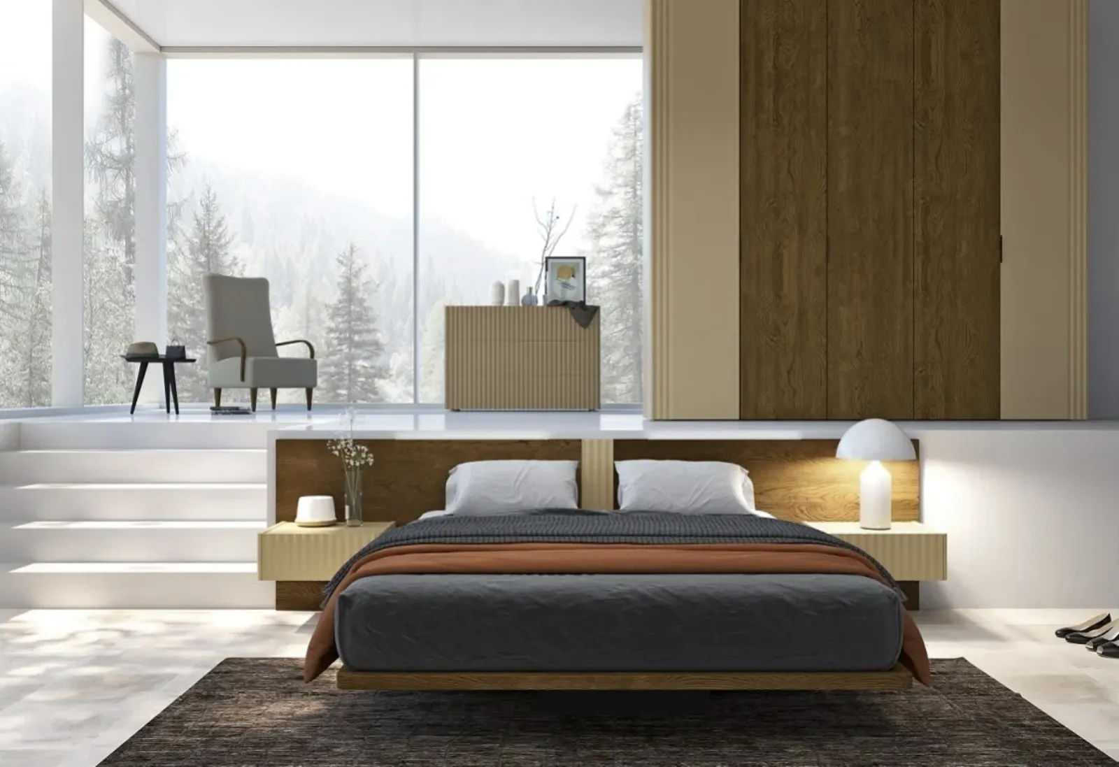 Scegli cromie e finiture e realizza il tuo progetto d’arredo nella camera, progettandola proprio come l'avevi sognata. Se vuoi una soluzione in legno, il modello presente in foto è connotato da materiali pregiati e linee decise, che invitano a passare un sonno profondo e ristoratore. Durante la scelta della giusta tipologia di letto, valuta con cura le sue dimensioni, i materiali, la forma e il suo stile rispetto al resto dell'arredo. I Letti matrimoniali con testiera della firma, leader nella produzione di Arredamento Casa per la camera da letto, sono progettati per essere abbinati a mobili e complementi di ogni genere, come armadi e comò, abat jour e piantane.