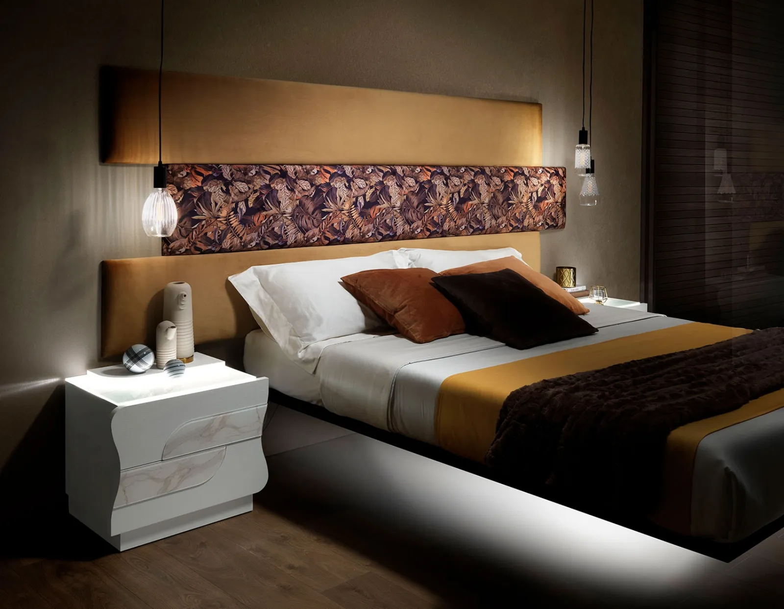 Scegli tonalità e texture e realizza il tuo progetto d’arredo nella camera da letto, progettandola proprio come l'avevi sognata. I Letti matrimoniali imbottiti del marchio, leader nella produzione di Arredamento Casa per la camera da letto, sono pensati per essere abbinati a mobili e complementi di ogni genere, come armadi e comò, lampade e piantane. Il Letto sospeso Gaia 02 di Mobil Più crea uno spazio accogliente e confortevole in ogni camera da letto, assicurandoti il sonno più profondo e un design unico. Se vuoi una soluzione in tessuto, il modello mostrato in foto è contraddistinto da materiali di qualità e forme decise, che invitano a passare un sonno tranquillo e ristoratore.