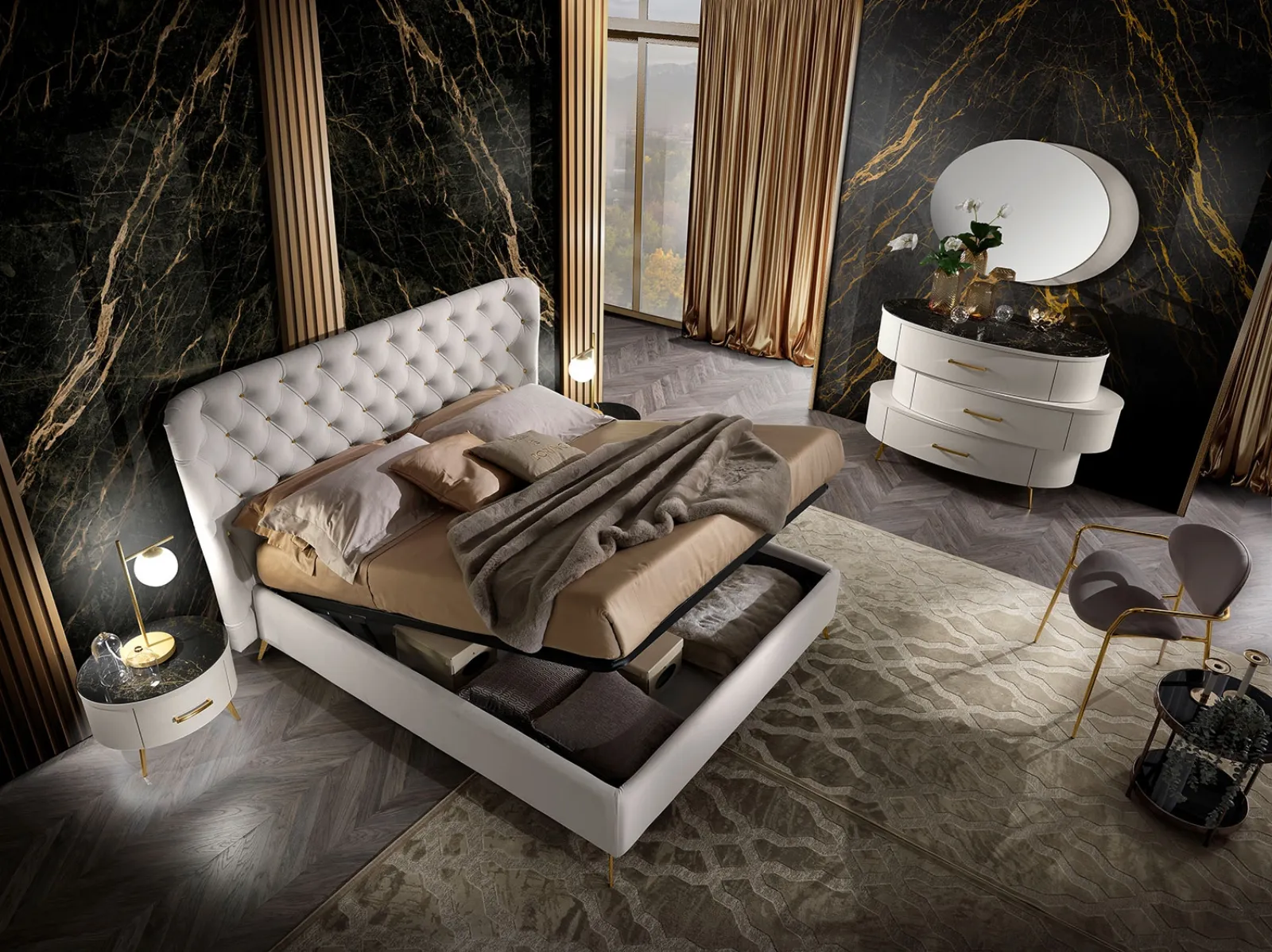 Scegli cromie e finiture e realizza il tuo concept d’arredo nella camera da letto, progettandola proprio come l'avevi immaginata. Se vuoi una soluzione in tessuto, il modello presente in foto è caratterizzato da materiali durevoli e forme decise, che invitano a trascorrere un riposo profondo e ristoratore. Durante l'acquisto della giusta tipologia di letto, valuta con attenzione le sue dimensioni, i materiali, la forma e il suo stile rispetto al resto degli arredi. Il Letto in tessuto Movida Luxury di Mobil Più ricrea uno spazio intimo e confortevole in ogni camera da letto, garantendoti il riposo migliore e un design unico.