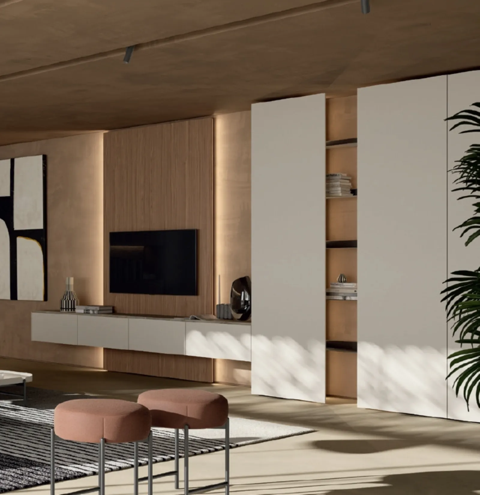 La Parete Attrezzata DA45 Grigio Seta di Dall'Agnese nell'immagine, con finitura in laccato opaco, risolve le più particolari problematiche abitative di spazio e stile senza rinunciare alla ricerca estetica. Se cerchi mobili salvaspazio e realizzabili su misura per te, contattaci e scopri di più sull'Arredamento Casa dei migliori produttori. Anche in un living di dimensioni contenute, questo tipo di arredo riesce a organizzare al meglio gli spazi valorizzando ogni angolo e garantendo componibilità su misura tipica delle soluzioni moderne. Questa soluzione rappresenta tutta la qualità che il marchio garantisce grazie a pluriennale esperienza e grande passione nel settore dell'arredo e del design.