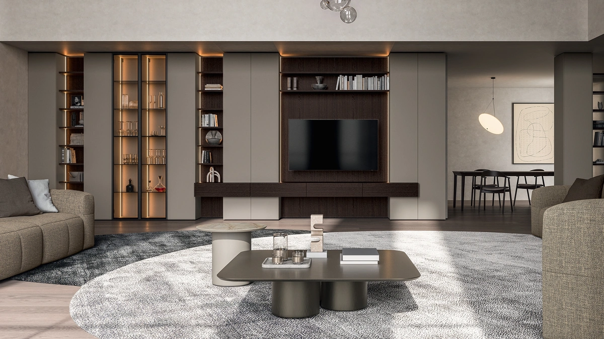 La Parete Attrezzata Slim in Rovere e Laccato di Dall'Agnese nella fotografia, realizzata in legno, risolve le più particolari esigenze abitative di stile e spazio senza rinunciare alla ricerca stilistica. Se cerchi arredi salvaspazio e realizzabili su misura per te, contattaci e scopri di più sull'Arredamento Casa dei migliori brand. Anche in un soggiorno abbastanza piccolo, questo tipo di arredo riesce a organizzare al meglio gli spazi valorizzando ogni angolo e assicurando componibilità personalizzabile tipica delle soluzioni moderne. Un po’ librerie, un po’ contenitori ed espositori: le Pareti Attrezzate sono ideali per attrezzare uno spazio dinamico e operativo.