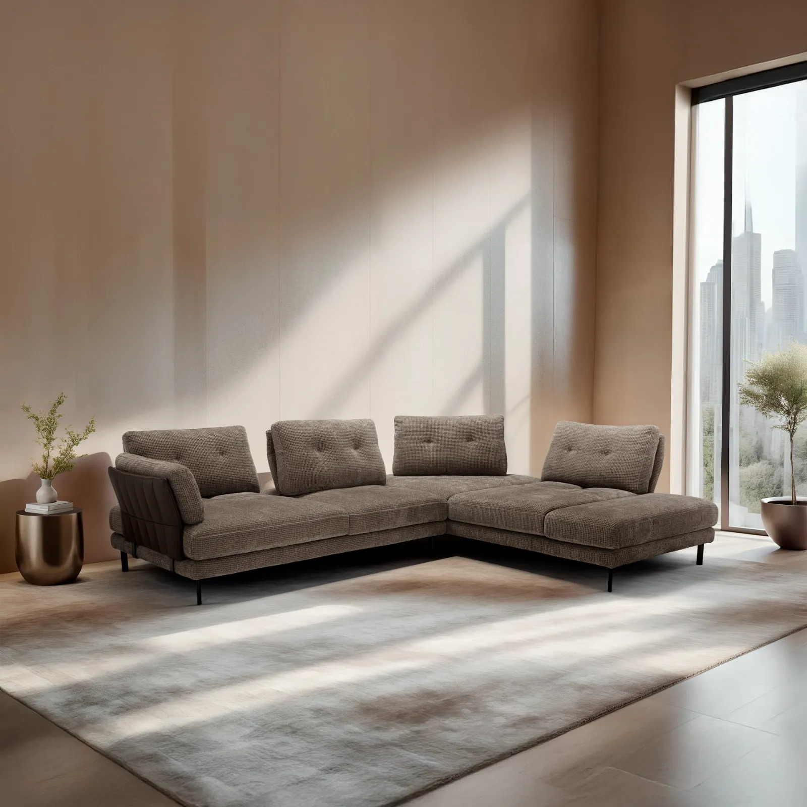 Scopri una grande varietà di imbottiti ad angolo dei migliori produttori e ottimizza il living che hai sempre sognato. I Salotti costituiscono un elemento del living veramente imprescindibile, da progettare con attenzione posizionando divani, poltrone e pouf. Il salotto è il centro del living di ogni casa, gli imbottiti sono moduli d’arredo attorno ai quali passare momenti di relax e di convivialità. Franco Ferri, leader nella produzione di divani, ha ideato per il modello nell'immagine un elegante e sofisticato rivestimento in tessuto.