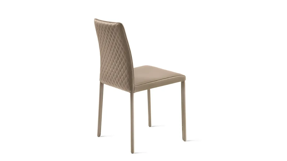 La Sedia Agata Bassa in pelle trapuntata di Julia Arredo Cuoio qui visibile è appartenente alla nostra linea di Sedie fisse moderne