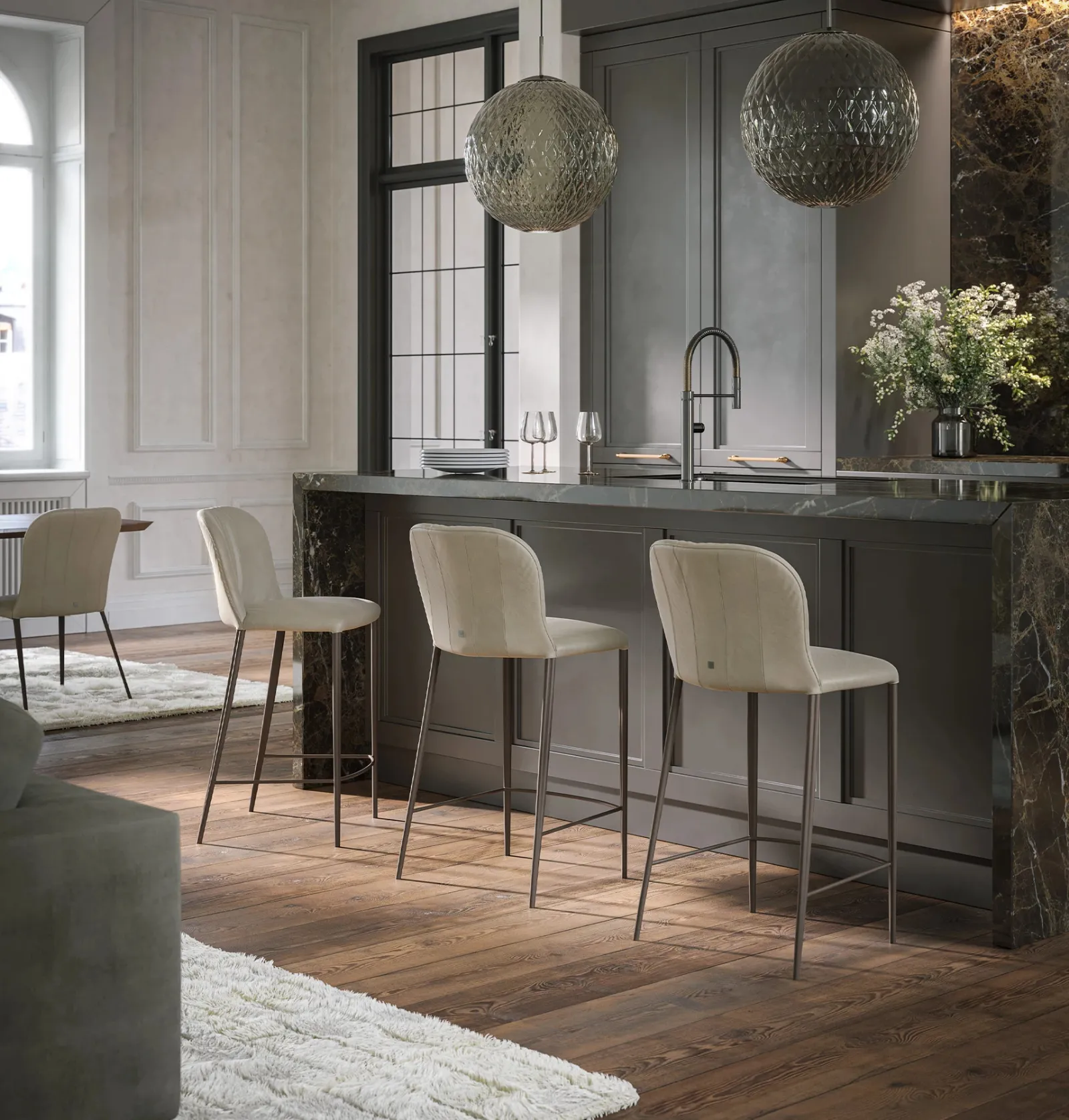 Un ricco catalogo di mobili e complementi ti attende nel nostro showroom, dove potrai trovare le Sedie sgabelli in pelle dei migliori produttori. La cucina e l'area pranzo non saranno veramente complete senza le giuste Sedie, da abbinare ai restanti pezzi d'arredo e allo stile della tua abitazione. Se vuoi completare atmosfere design, il modello presente in foto è la scelta ideale per un locale di questo stile. Con questa soluzione comoda, ergonomica e ad alto contenuto estetico potrai ultimare il tuo progetto d'arredo e completare la stanza dove si socializza con amici e parenti. Sgabello Bustier in pelle di Tonin Casa: scegli una tra le più belle proposte della marca, specialista del settore Arredamento Casa.