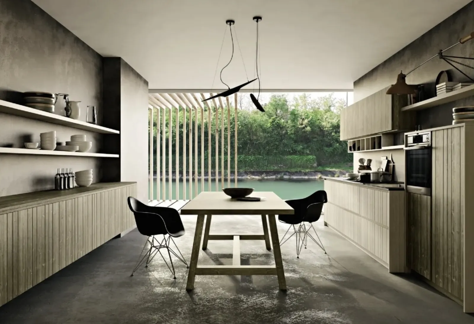 Modello moderno in legno New Step 01 di Fratelli Mirandola che è appartenente alla collezione di Cucine in linea
