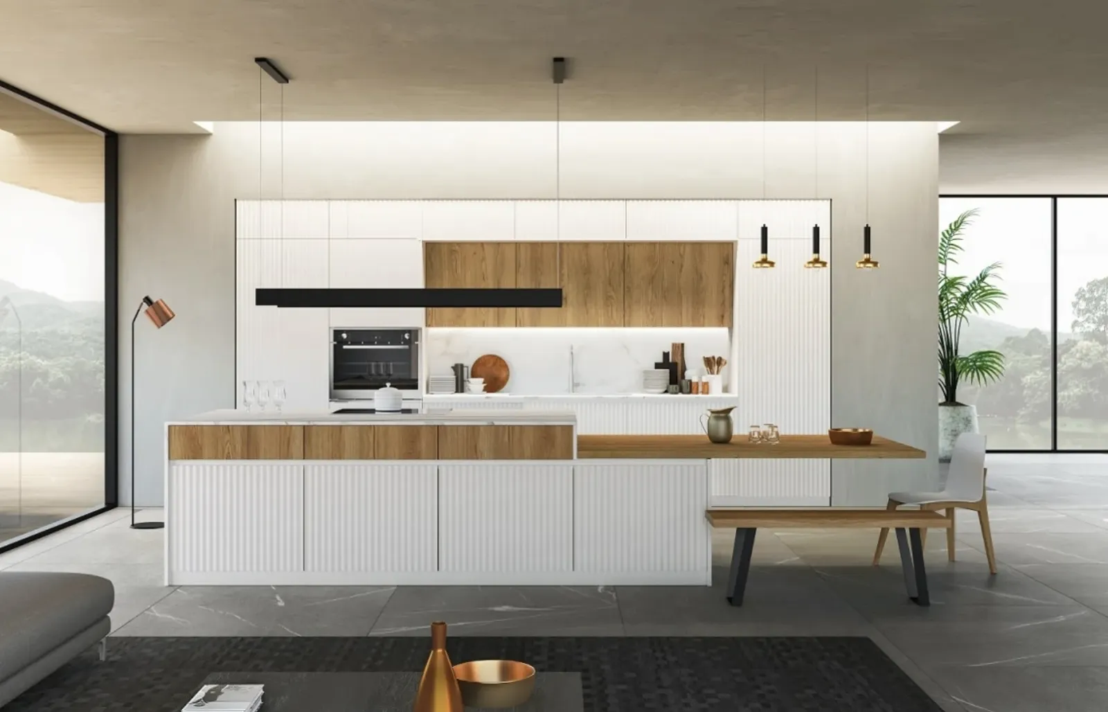 Le nostre proposte in laccato opaco permettono di gestire la propria casa sentendosi sempre accolti e a proprio agio, contando su un materiali di pregio e di lunga durata. Se ti piacciono le linee uniche delle Cucine su misura con isola, vieni da noi: siamo concessionari della marca Fratelli Mirandola e i nostri arredatori ti attendono per guidarti verso il modello che fa per te. La Cucina su misura Wave 03 di Fratelli Mirandola è stata studiata per chi vive la propria casa in modo operativo e pratico ma non sa rinunciare a design e contenuto estetico.
