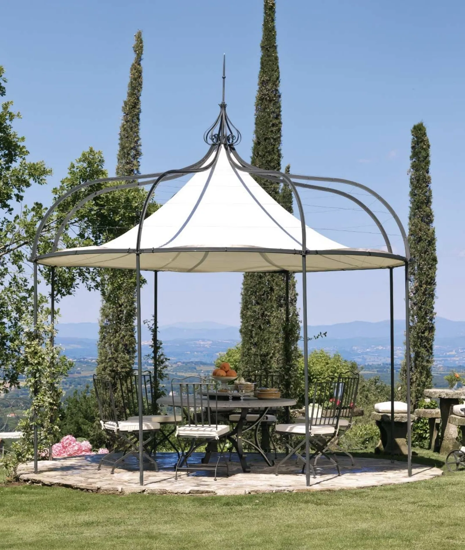 I prodotti che il marchio mette a punto uniscono materie prime di qualità e forme accattivanti e consentono di ultimare lo spazio verde al meglio. L’Arredo Giardino in metallo dell'azienda Unopiu è realizzato in materiali durevoli, ideali per resistere alla pioggia e mantenere nel tempo le doti estetiche. Gazebo Solaire rotondo di Unopiu: fa parte della ricca linea di Arredo Giardino del conosciuto marchio, sinonimo di eccellenza nel settore dell'arredo per l’outdoor. Gli spazi esterni vengono spesso visti come angoli di quiete dove rilassarsi: gli arredi devono creare un'ambientazione sempre accogliente e raffinata.