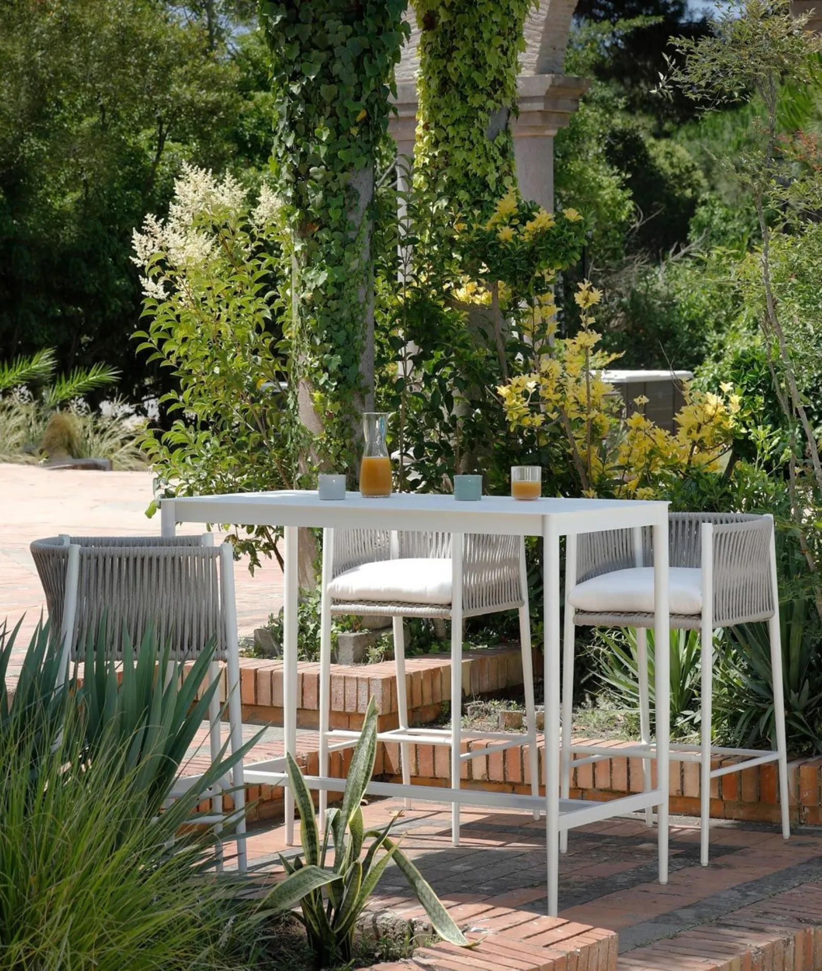 Materiali di lunga durata e forme di tendenza contraddistinguono questo modello di tavoli da giardino in tessuto di Unopiu, sinonimo di qualità ed eccellenza nel campo. Al giorno d'oggi, anche il giardino viene considerato spazio domestico da organizzare con attenzione, in modo che risulti ben strutturato e bello da vedere. Questa proposta di Sgabello Luce in tessuto e alluminio e Tavolo alto in alluminio di Unopiu ti farà creare un comodo living all'aria aperta, unendo grandi doti di praticità e design. Così come nei locali indoor, anche all'aria aperta è possibile formulare il proprio stile in termini di arredo, dando vita a composizioni arredative di grande valore estetico.